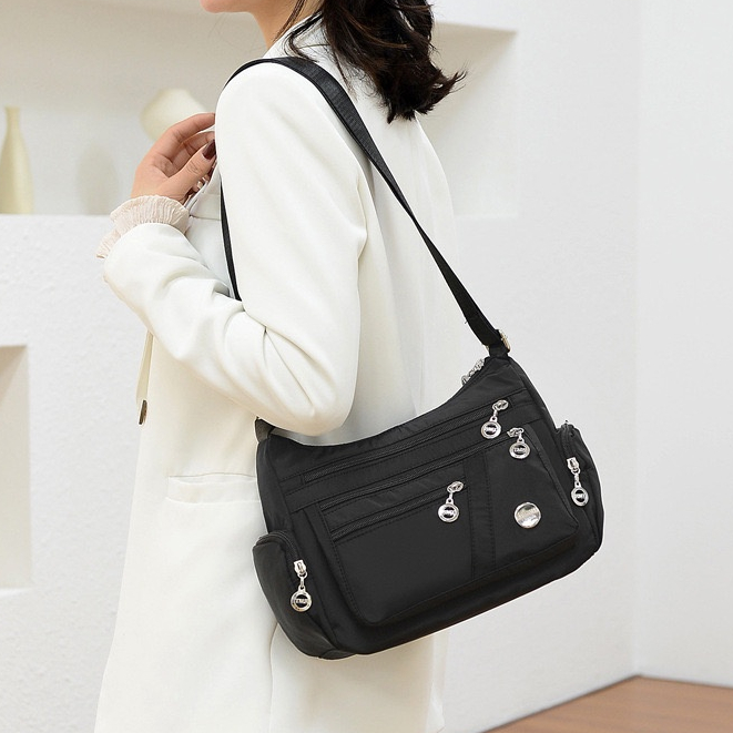 Tas Selempang Bahu Wanita Nylon Import High Quality / Tas Jalan Jalan Muat Banyak Barang / Tas Kerja Wanita / Diaper Bag / Tote Bag / Sling Bag Besar TW002