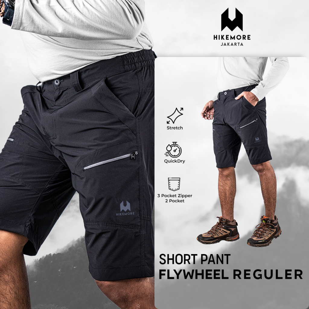 Celana Pendek QuickDry Pria Gunung Hiking Hikemore Flywheel Reguler