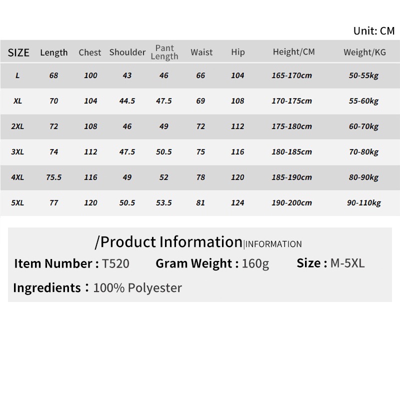 M, L, XL, 2XL, 3XL, 4XL, 5XL