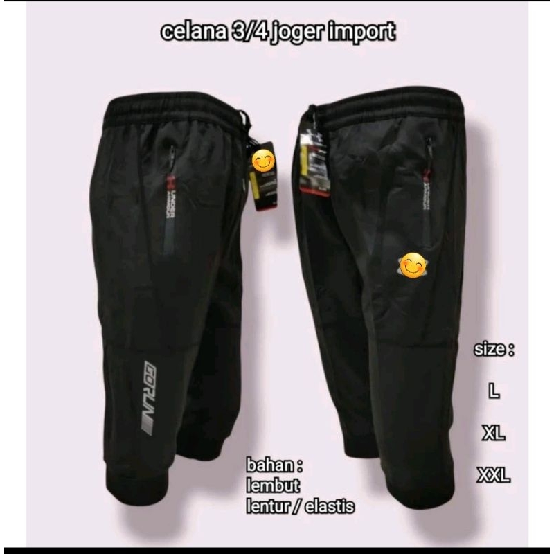 celana 3/4 sebetis di bawah lutut joger import olahraga running fitness gym sepeda jogging senam lari