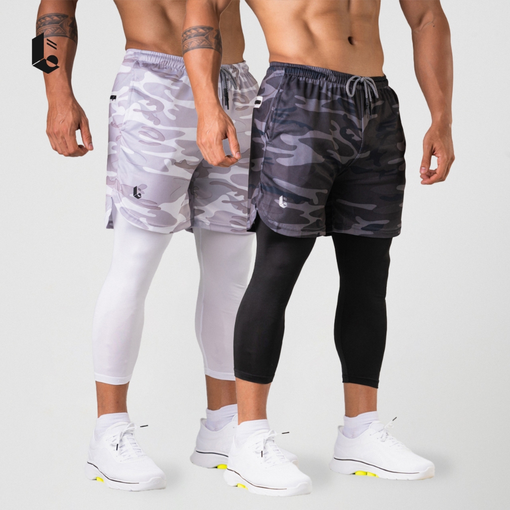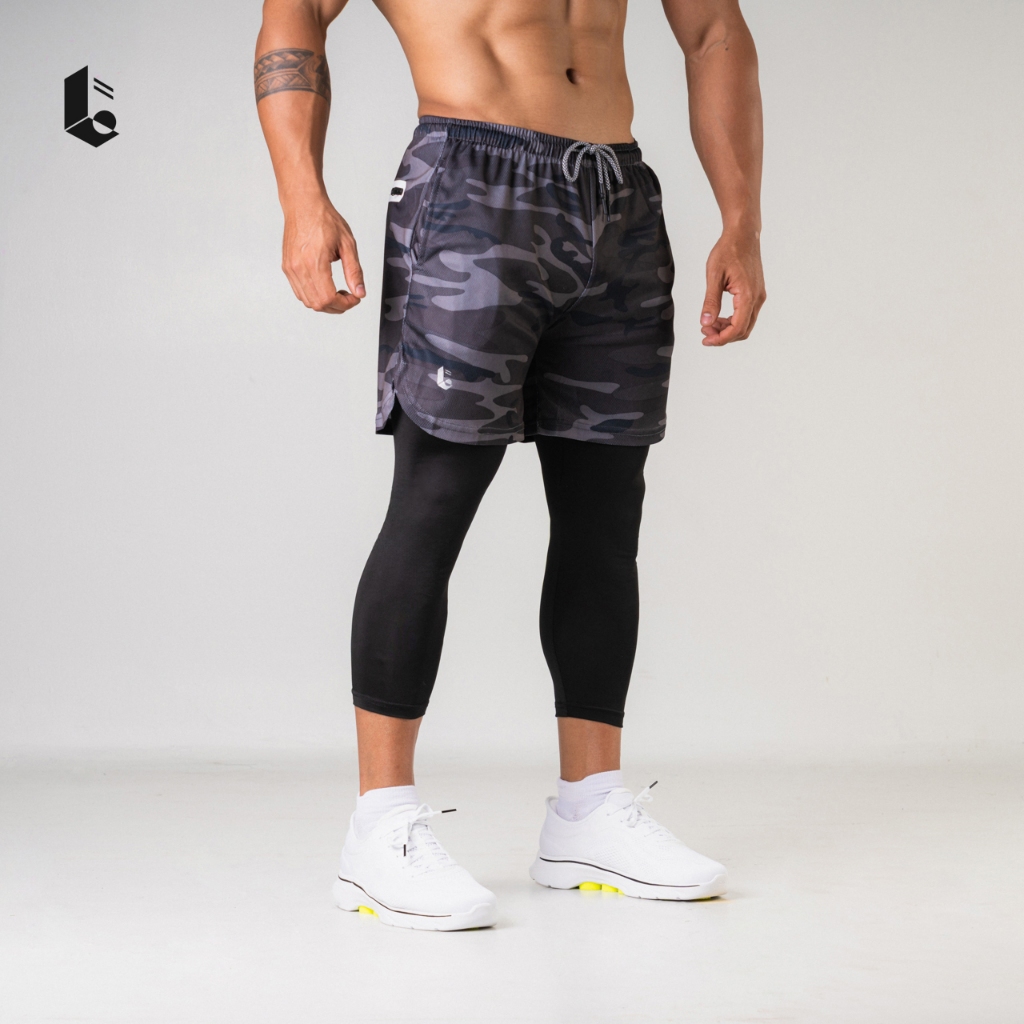 Celana 2 in 1 Legging Manset Panjang Olahraga Sport Compression Long Pants Dry Fit Running Gym Pria