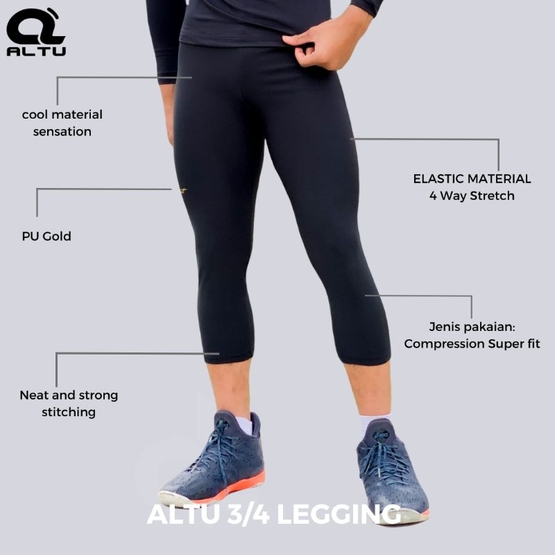 ALTU Celana Legging Olahraga 3/4 Unisex Spandex Polyester
