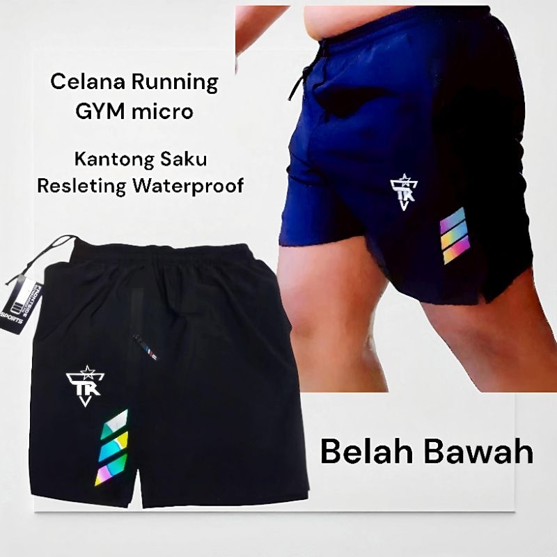 TR Sports - Celana Pendek Olahraga Lari joging Belah samping Tahan Air Tidak Mudah Kusut