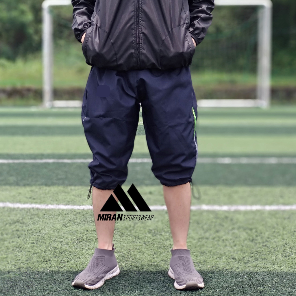Celana Sport Wanita Sontog 3/4 Selutut Saku Resleting Samping Celana Training Olahraga Hitam Pria