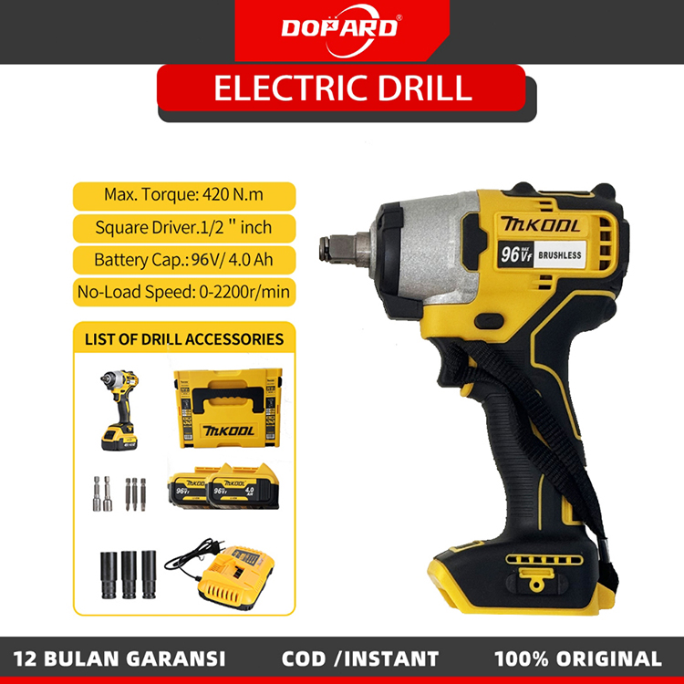 Mesin Bor Pembuka Baut MKODL 8500-96V1 Kunci Pas bor listrik set 2 in 1 Impek Wrench Bor Baterai Fullset Aksesoris