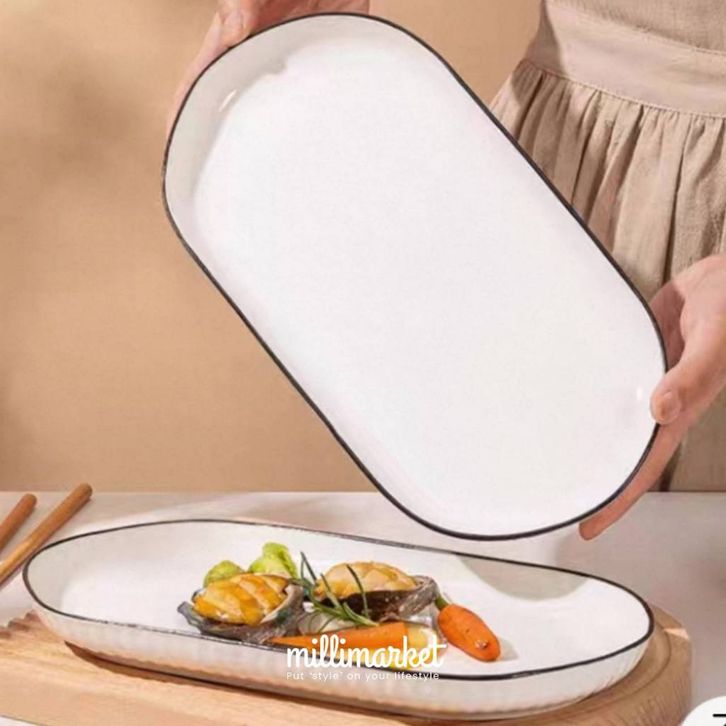 Piring mangkok keramik set putih list hitam /Korean aesthetic plate bowl set