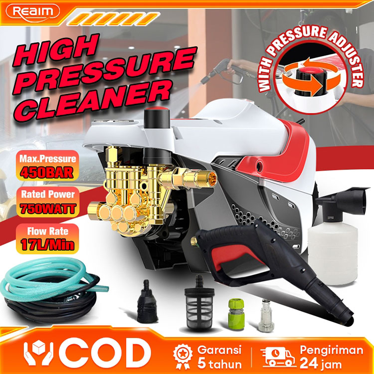Reaim 750W Jet Cleaner 500Bar Induksi Mesin Cuci Mobil Tekanan Tinggi Dengan Fitur Pengatur Tekanan Air Pembersih Jet Se