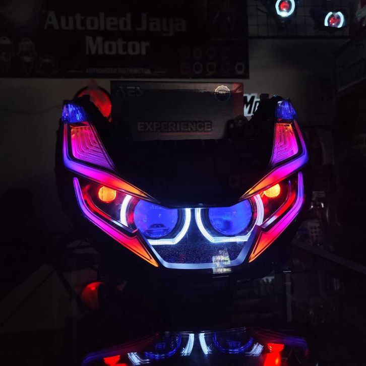 TERLARIS REFLEKTOR BILED HONDA PCX 160 ( BILED AES EXSPERIENCE 60 WATT ) ALIS & DEVIL RGB SMARTPHONE