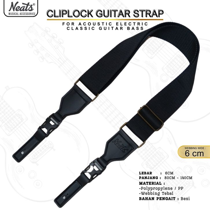 RK - NEATS STRAP GITAR CLIPLOCK / STRAP LOCKING LEBAR 6 CM / STRAP GITAR LOCK AKUSTIK ELEKTRIK & BASS