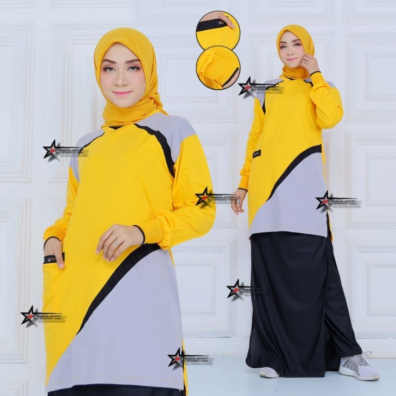 Terbaru " Setelan Baju Olahraga Senam Rok Celana (Rocela) Wanita Tunik Muslimah / Setelan Baju Olahraga Tunik Wanita / Setelan Kaos Olahraga Muslimah