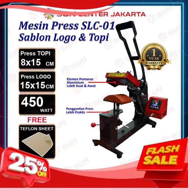[Mall] Mesin Press Sablon Mini Logo Label 15x15 cm & Sablon Topi Premium - SUN 2in1 CAP & LOGO HEAT PRESS