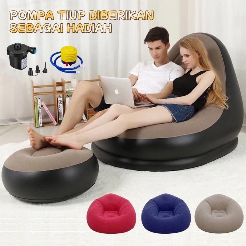 Sofa Angin Sofa Santai Angin Free Pompa Kursi Santai Dengan Sandaran Kaki+Pompa Grati