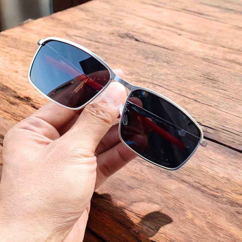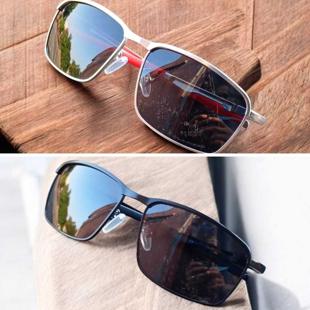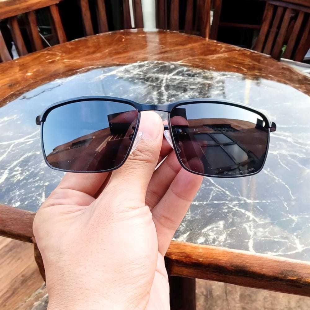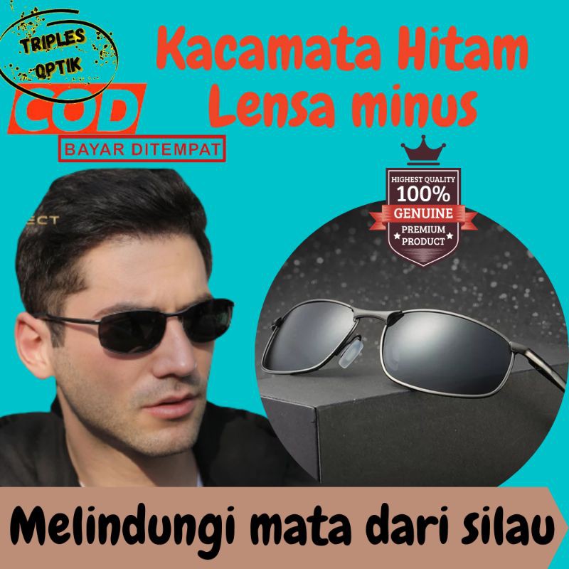 CAPONI Kacamata minus Pria Lensa Hitam Permanen Frame Titanium Tangkai Pegas Anti Silau Outdoor