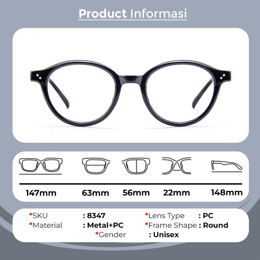 Berrybarton Kacamata Bulat Metal PC Lensa Minus Anti Radiasi Bluercromic Pria Wanita Frame Anti UV 8347