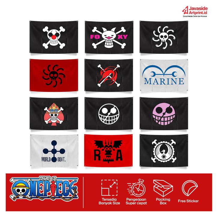 TERMURAH BENDERA LOGO BAJAK LAUT ANIME ONE PIECE - JOLLY ROGER ONEPIECE PIRATES LENGKAP SEMUA CREW ababh