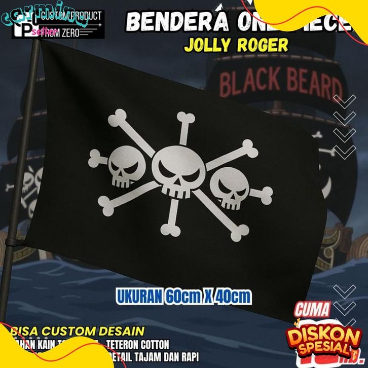 TERBARU Bendera One Piece Bendera Logo Bajak Laut One Piece Flag Jolly Roger One Piece Dekorasi Kamar 60X40