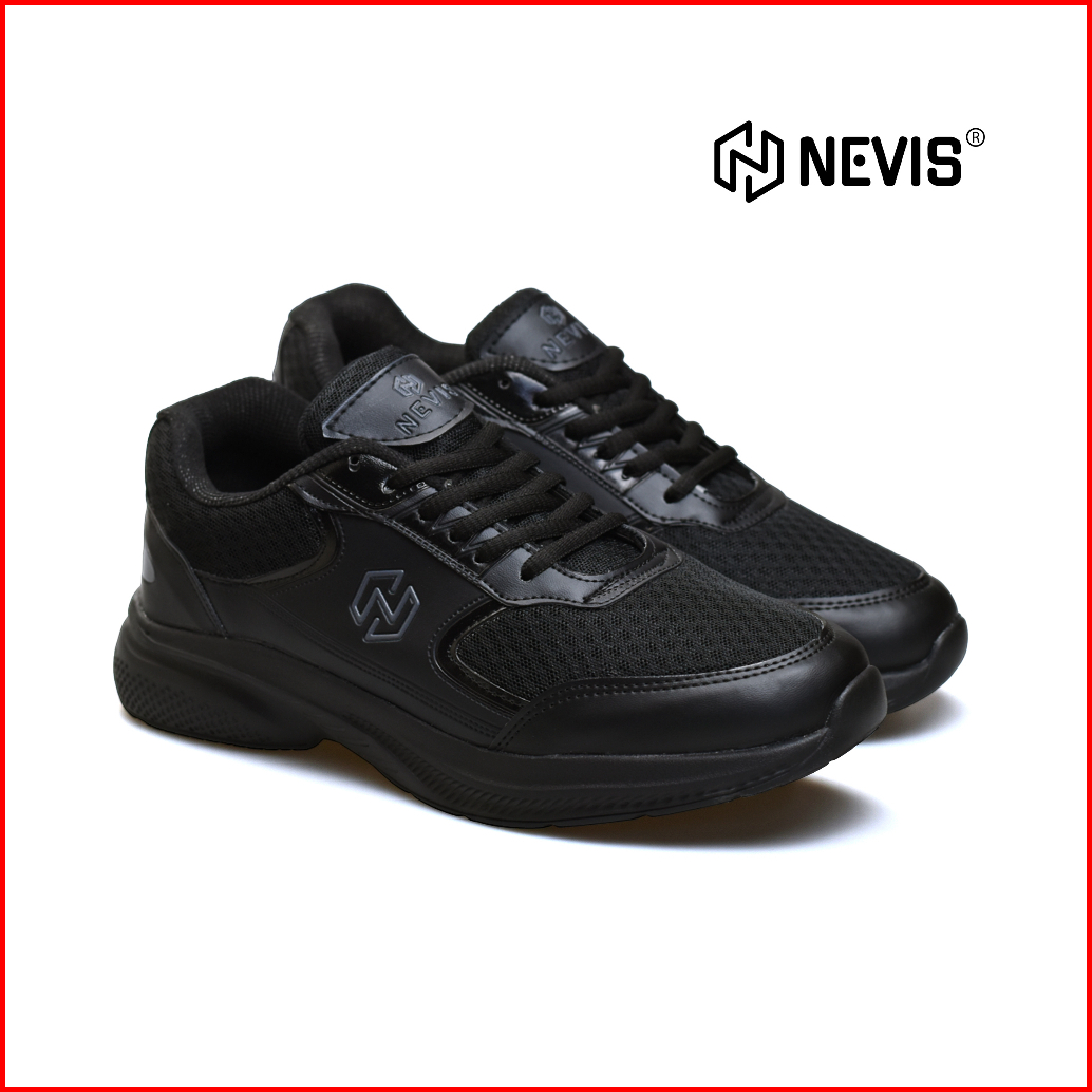 Nevis Sepatu Sneakers Casual Pria Wanita Austin Sekolah Sport Olahraga Full Black Hitam Polos