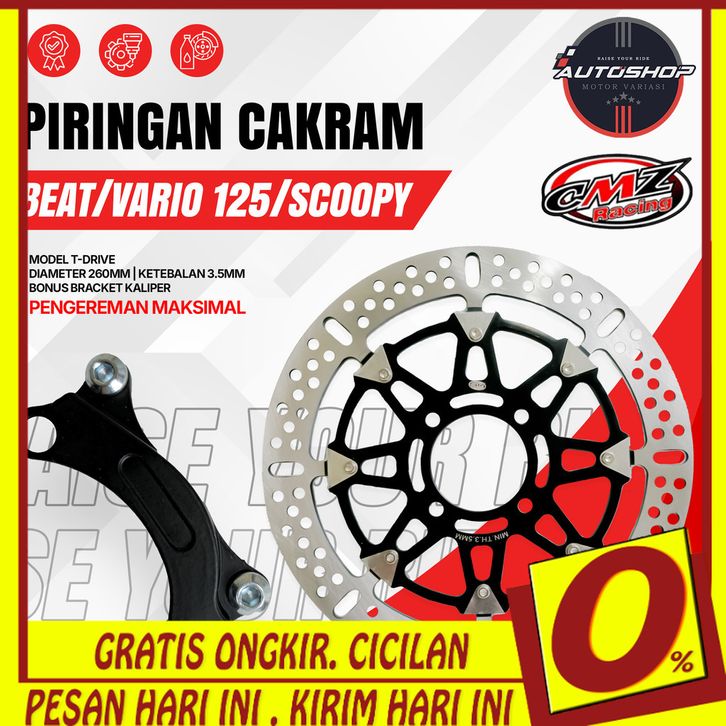 Piringan Cakram Depan 260MM BEAT VARIO 125/150 100 LED OLD/OLD/KZR GENIO SCOOPY Model T-DRIVE 4 LUBANG DATAR Bonus Brack