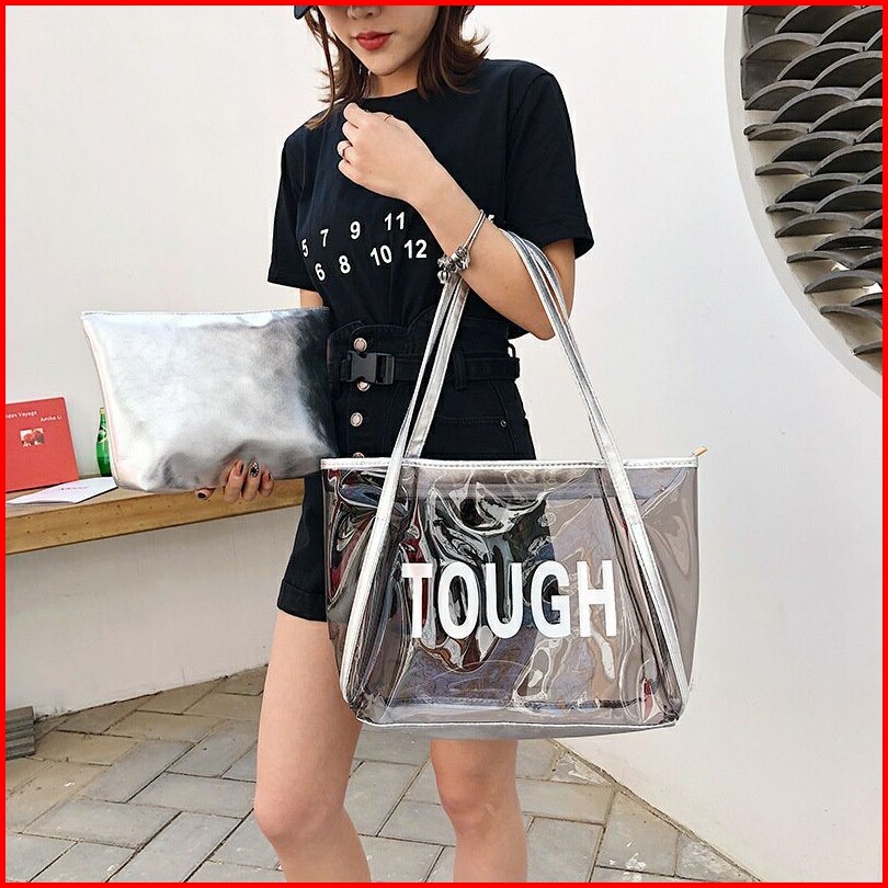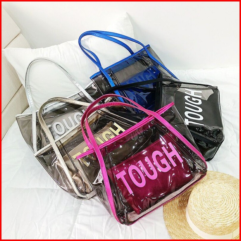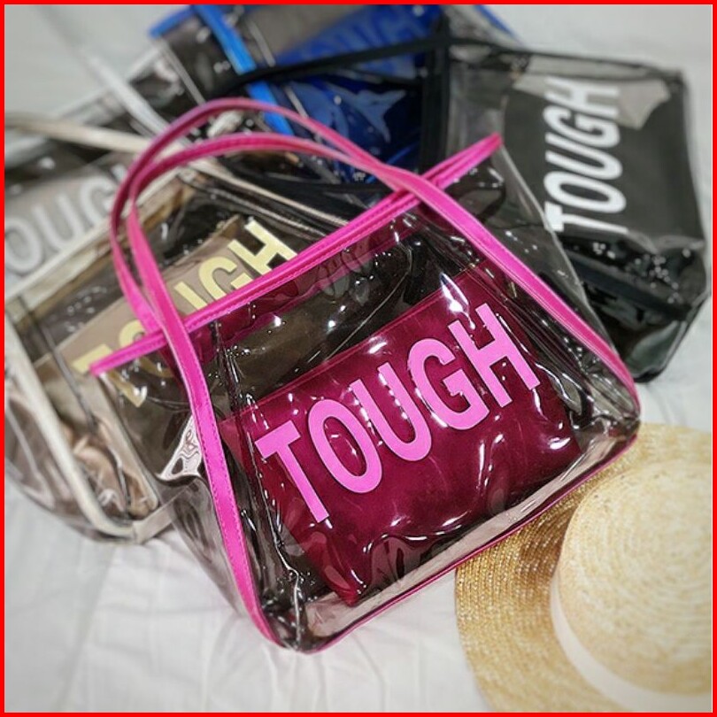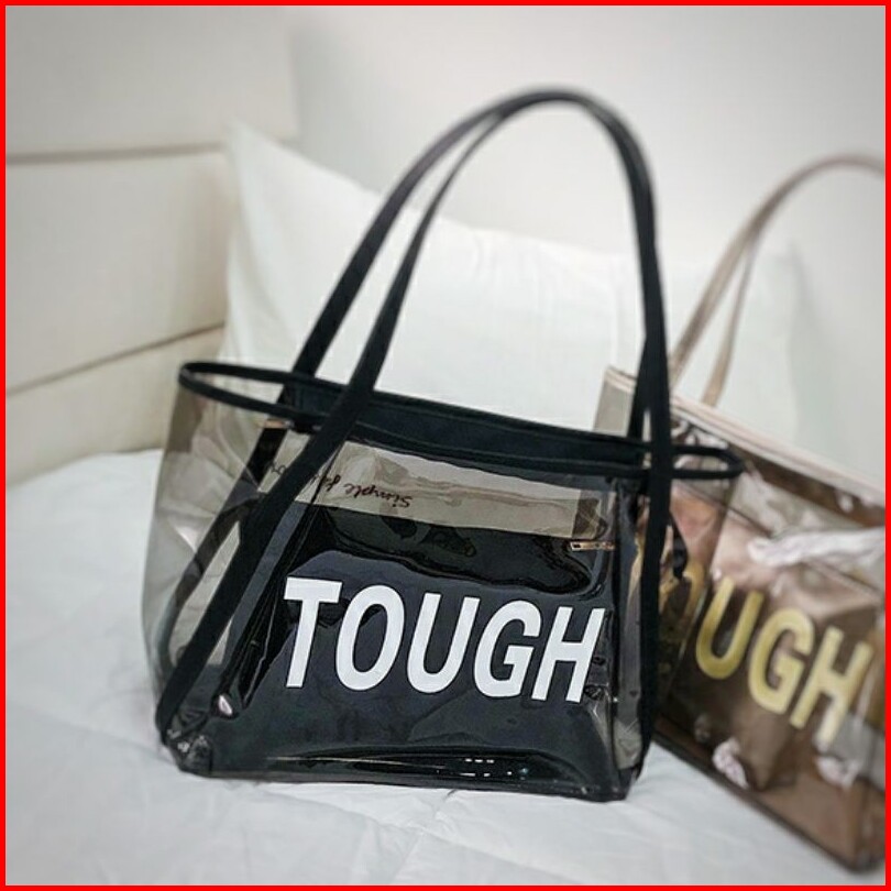Shoulder Shopping Bag Tough Plastik Pvc Tote Transparan Tas Wanita Tw1811