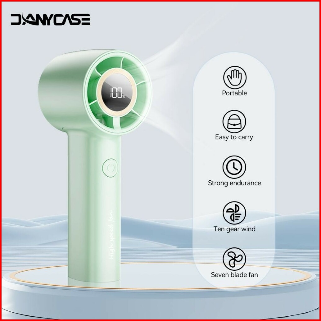 Danycase Mini Kipas Fan Strong Wind 100 Gear Wind Speed Kipas Angin Digital Display Adjustable Turbo Kipas Tangan Untuk