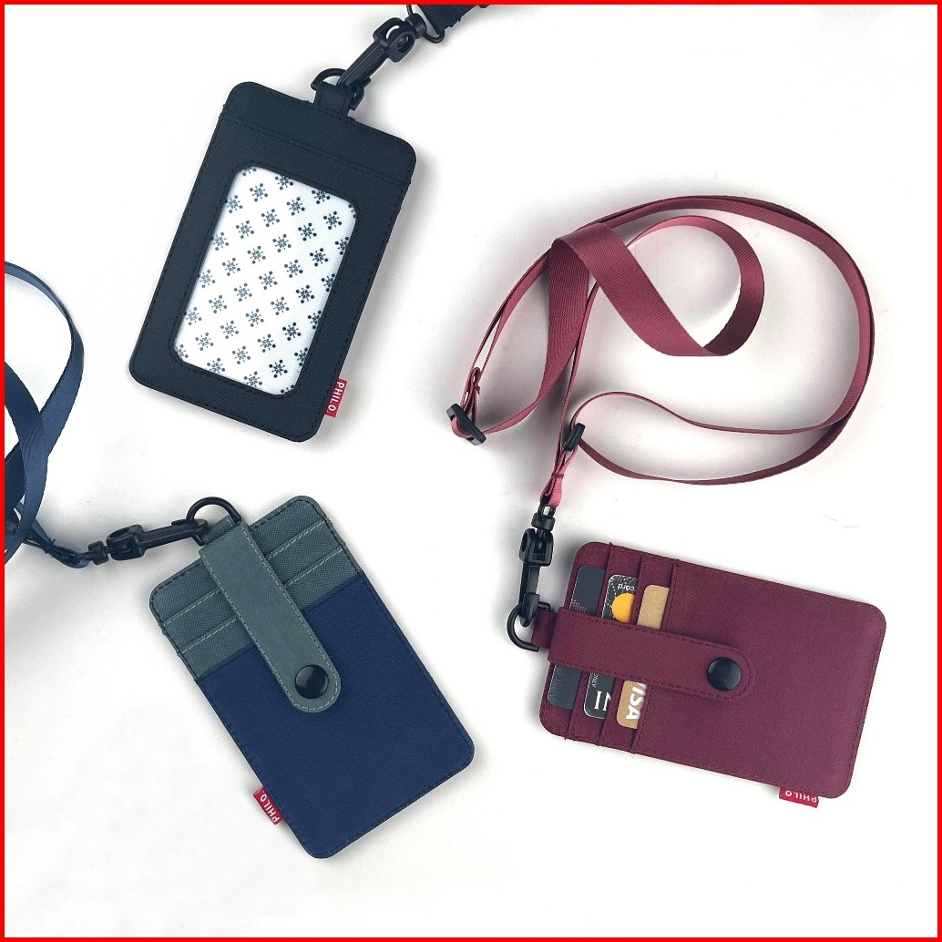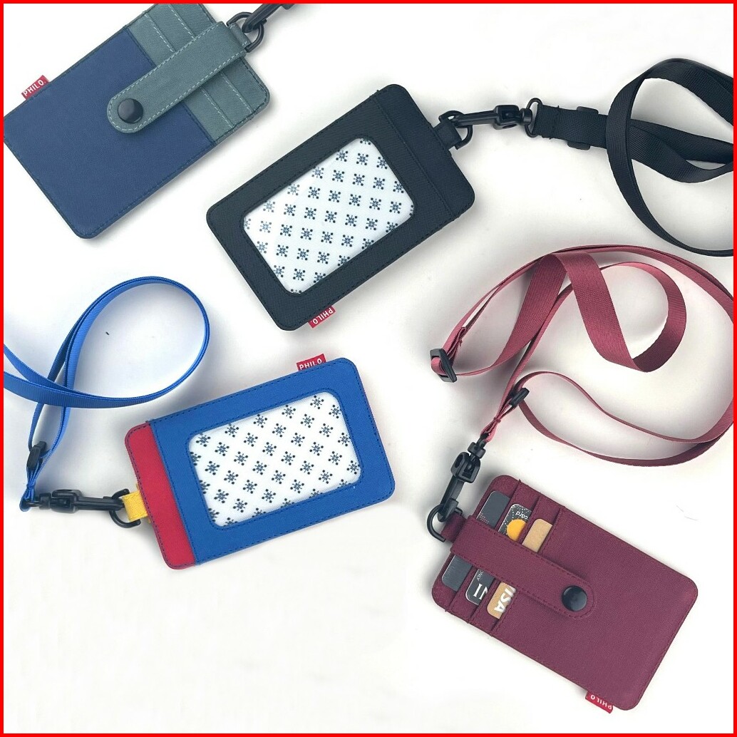 Id Card Holder Dompet Gantung Name Tag Kartu Lanyard Kain Polos Philo