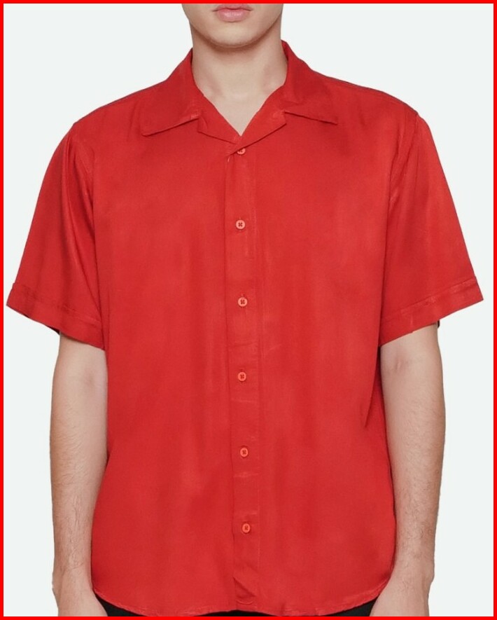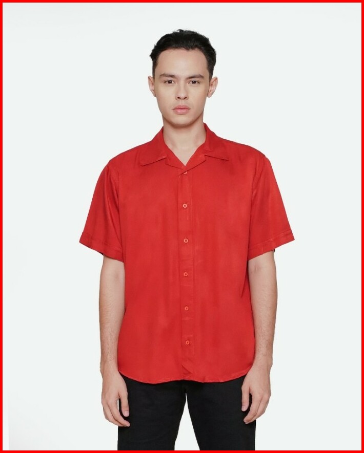 Kemeja Unisex Erigo Short Shirt Gruney Katun Red