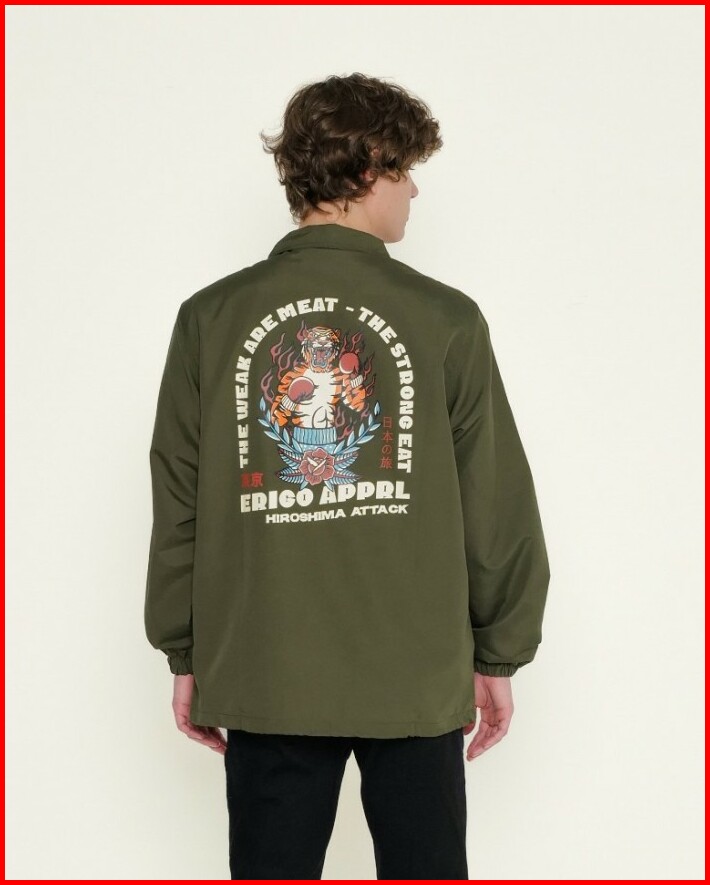 Outerwear Unisex Erigo Coach Jacket Yoku Taberu Taslan Olive
