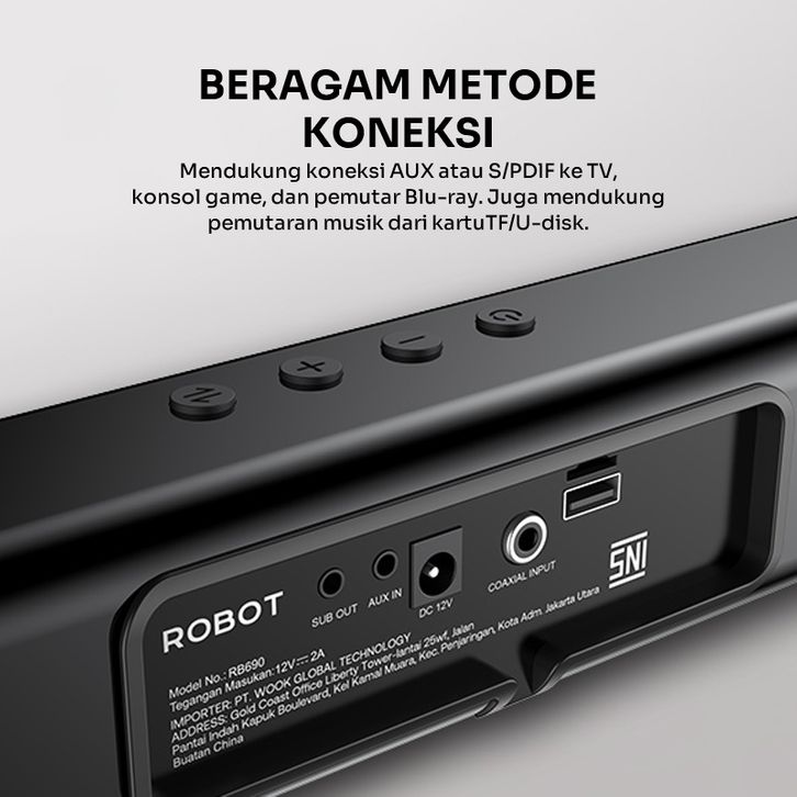 ROBOT SPEAKER SOUNDBAR HOME THEATER 30W BLUETOOTH 5.4 SPEAKER TV SUPER BASS BLUETOOTH 5.4 SUBWOOFER RB690 ORIGINAL - GAR