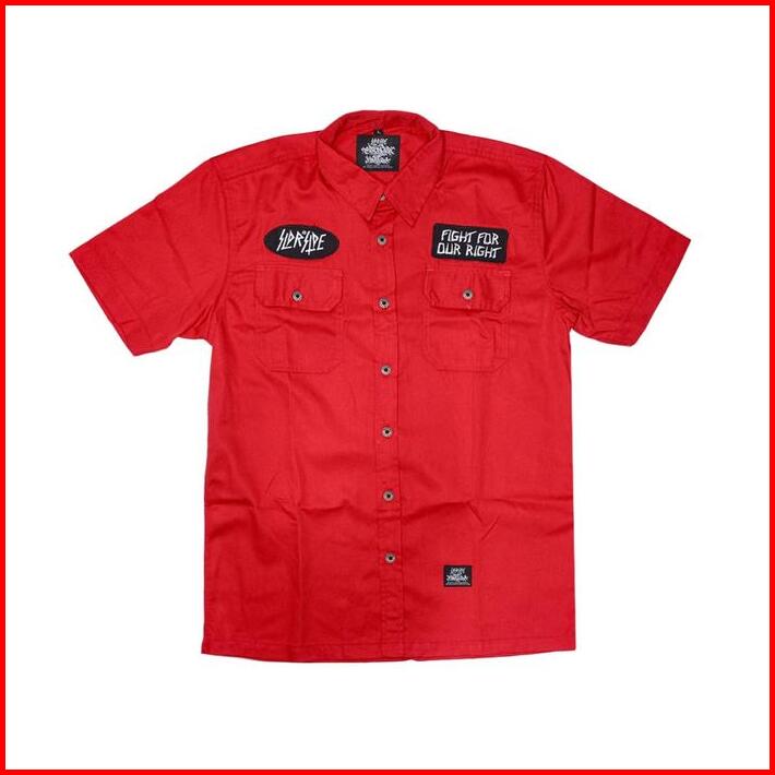 Soldierside Workshirt Baju Distro Merah Fighter Ws180 Kancing Bordir Nyaman Keren Pria