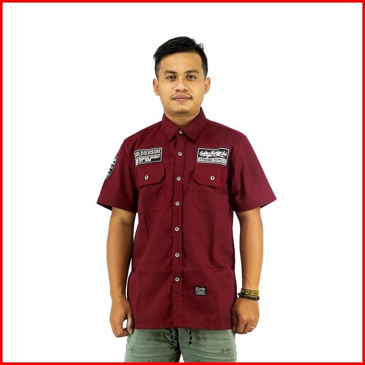 Kemeja Workshirt Soldierside Badass Maroon 175