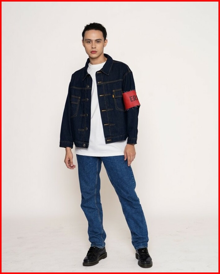 Outerwear Unisex Erigo Denim Jacket Pocket Croix Mud Blue