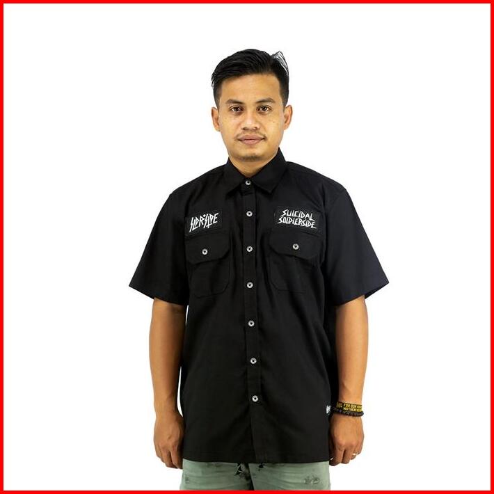 Soldierside Familia Workshirt Pria Hitam Logo Ssuicidal Ws169 Bordir Kancing Distro Keren