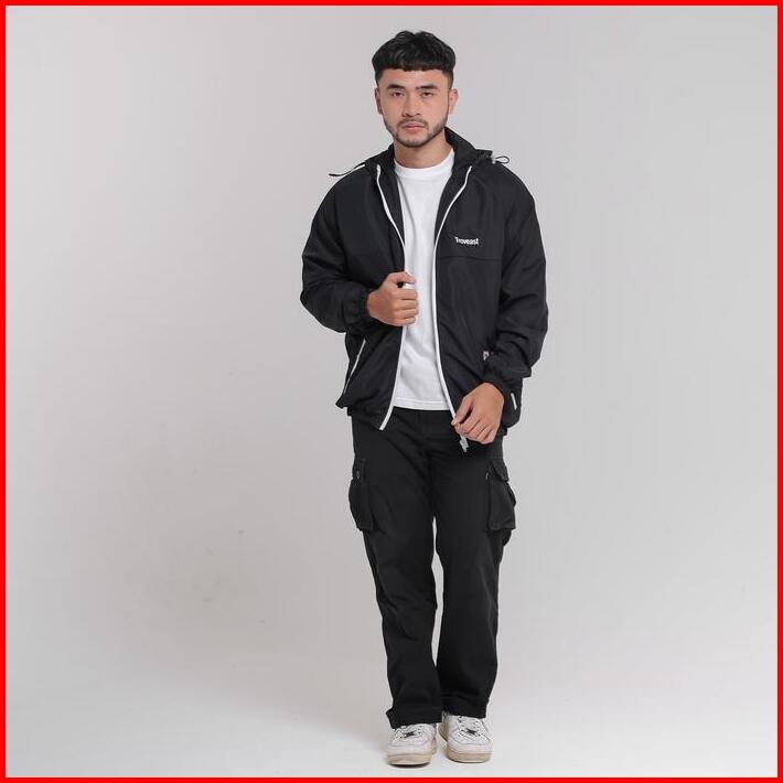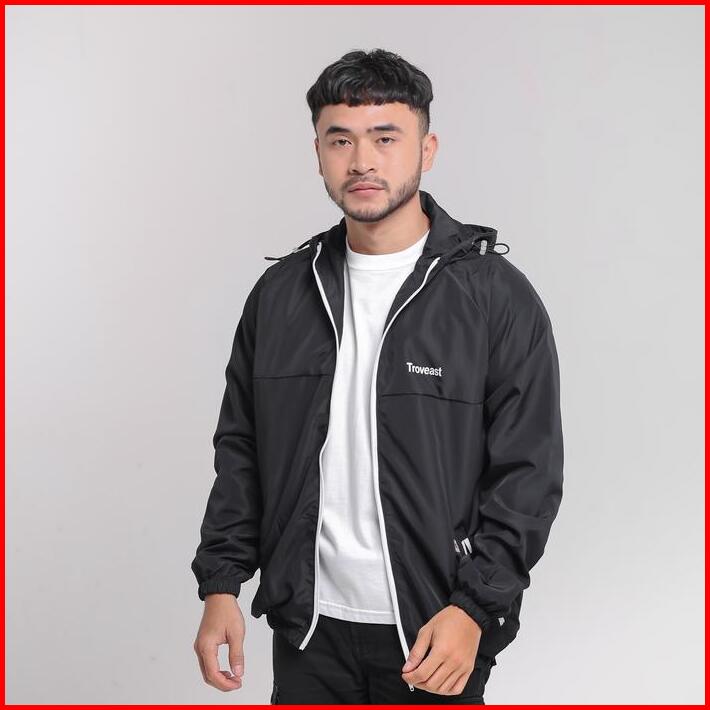 Troveast Jaket Parasut Windbreaker Spring Series Black Lembut Nyaman Kantong Panjang