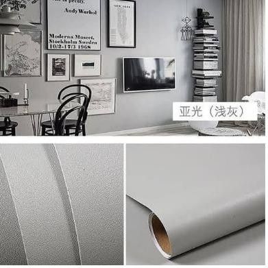 WALLPAPER DINDING MURAH / WALLPAPER STICKER MOTIF ABU MUDA POLOS TEKSTUR 45 CM x 9 - 10 M