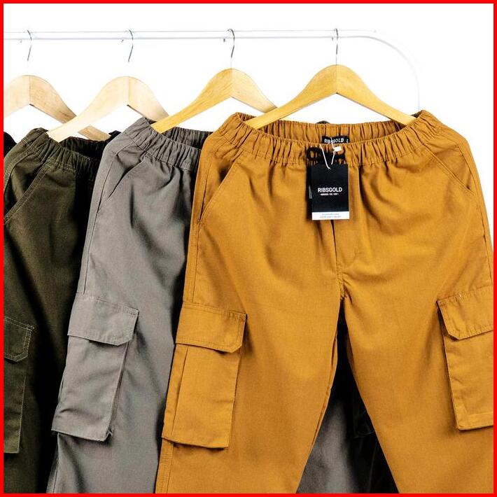 Last Stock Ribsgold Celana Long Cargo Pants Fit Panjang Pant Casual Pria Santai Slim