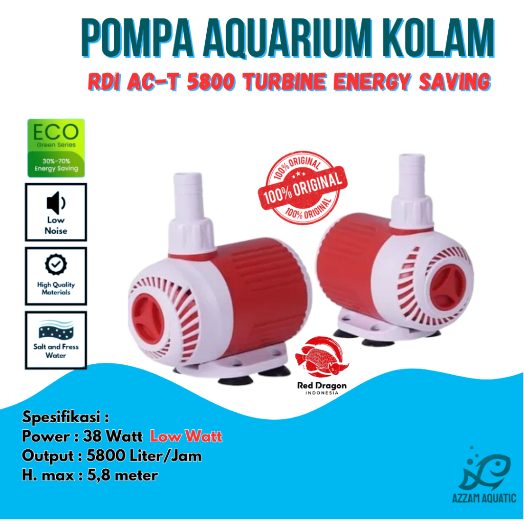 Pompa Aquarium Kolam Ikan Daya Rendah Low Watt RDI AC-T ACT 5800 TURBINE ENERGY SAVING ECO Water Pump