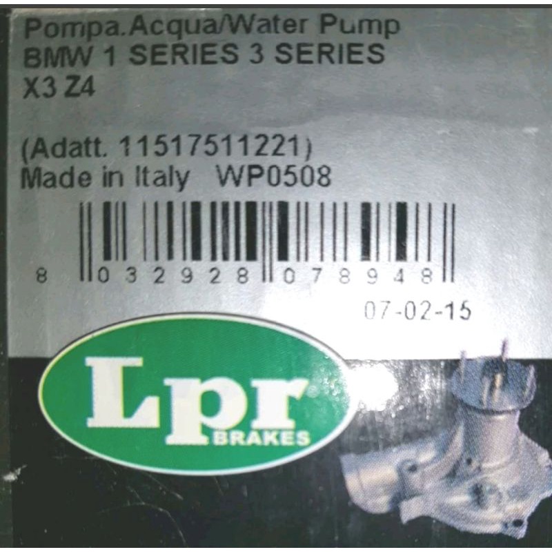 Water pump BMW 11517515778 E46 N42 E90 N46N merk LPR Italy