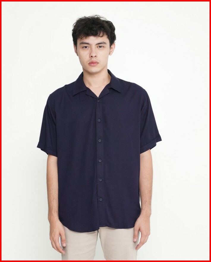 Kemeja Unisex Erigo Short Shirt Gribson Rayon Navy
