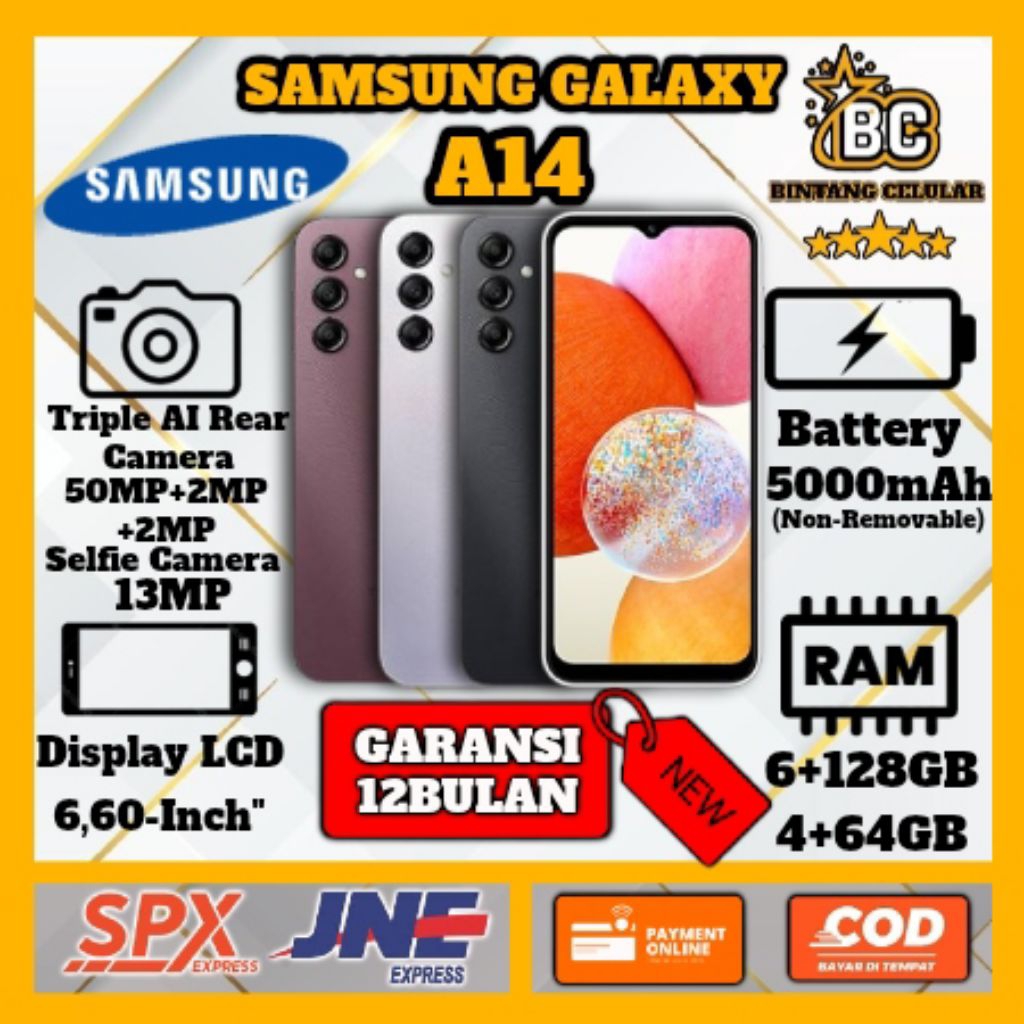 BISA [NEW PROMO] HP SAMSUNG A14 Ram 6+128GB Camera 50MP + Display 6,6 inches + Battery 5000mAh + Fast Charging GARANSI 1 TAHUN BINTANG CELL