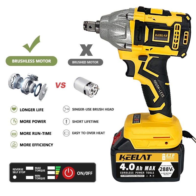 KEELAT-KID003 420N.M Cordless Impact Wrench 13MM Brushless Mesin Bor MT Baterai