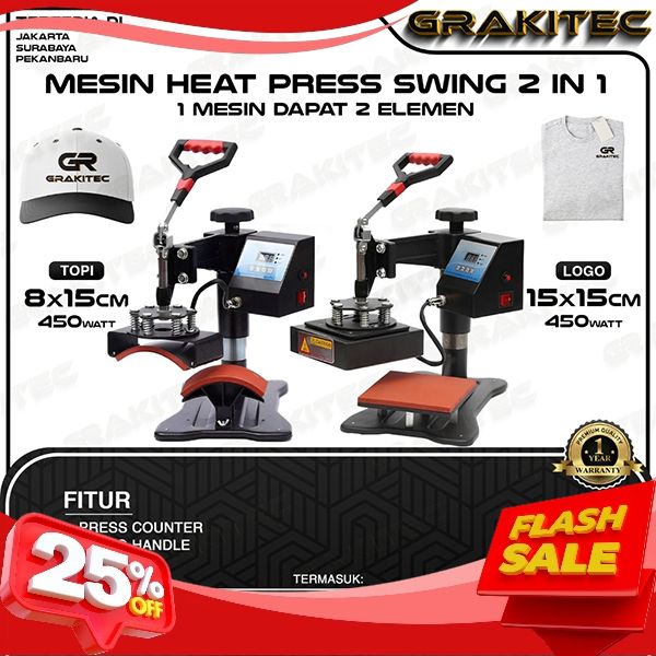 [Mall] Mesin Press Sablon SWING Topi & Logo / 2in1 Mesin Sablon untuk Topi kaos,Logo,Label,Kerah Leher,InsideTag,lengan,