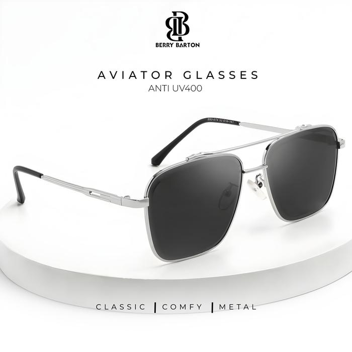 Berrybarton - Kacamata Hitam Anti UV400 Sunglasses Anti Silau Kacamata Aviator Metal Pria Wanita 80-674