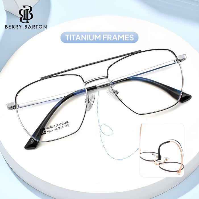 Kacamata Minus Frame Aviator Titanium Pria/Wanita Berrybarton 1021