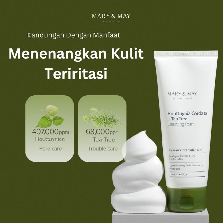 Mary&May Houttuynia Cordata + Tea Tree Cleansing Foam Acne Prone and Sensitive skin facial wash hada labo
