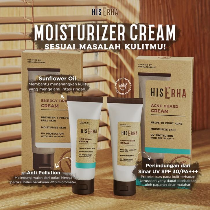 pelembab pria HisErha Energy Bright Cream Pelembap Wajah SPF30 209r