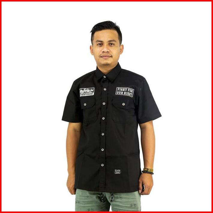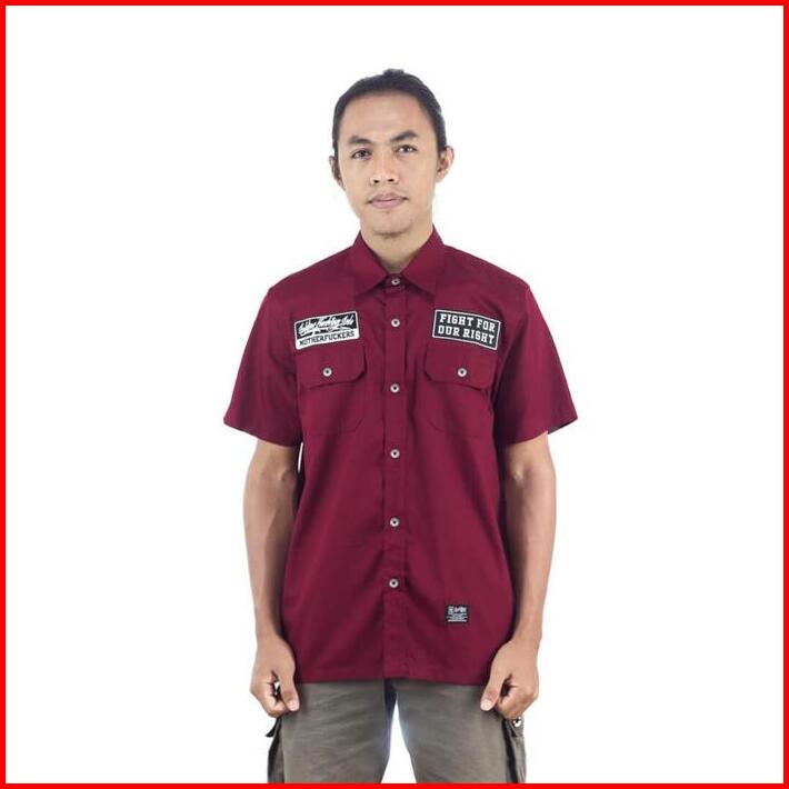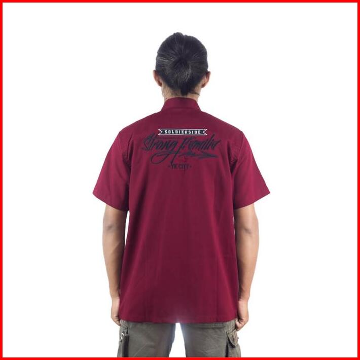 Soldierside Workshirt Distro Pria Scumb Hitam Maroon Navy Bordir Rapi Kancing Keren Simpel