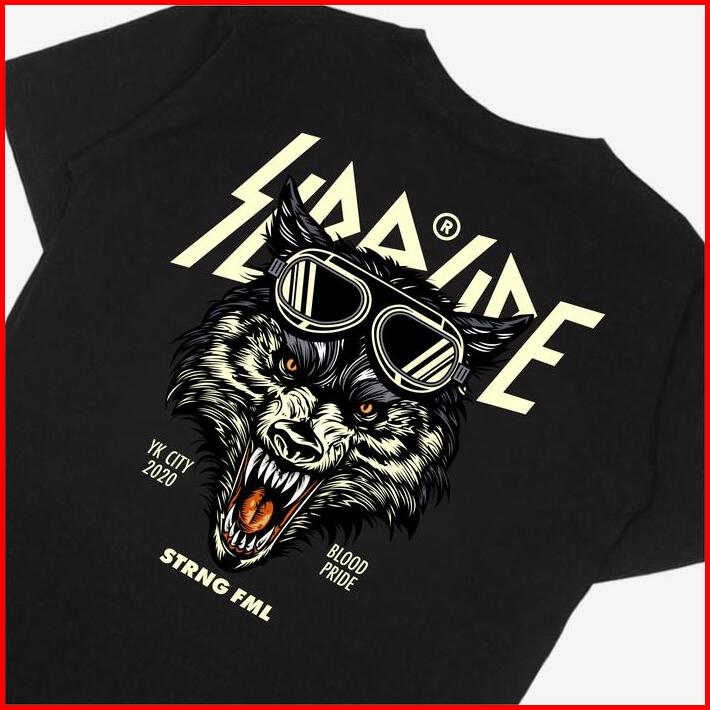 Soldierside T-shirt Baju Distro Night Wolf Black 786 Katun Hitam Soft Pria Kaos Pendek