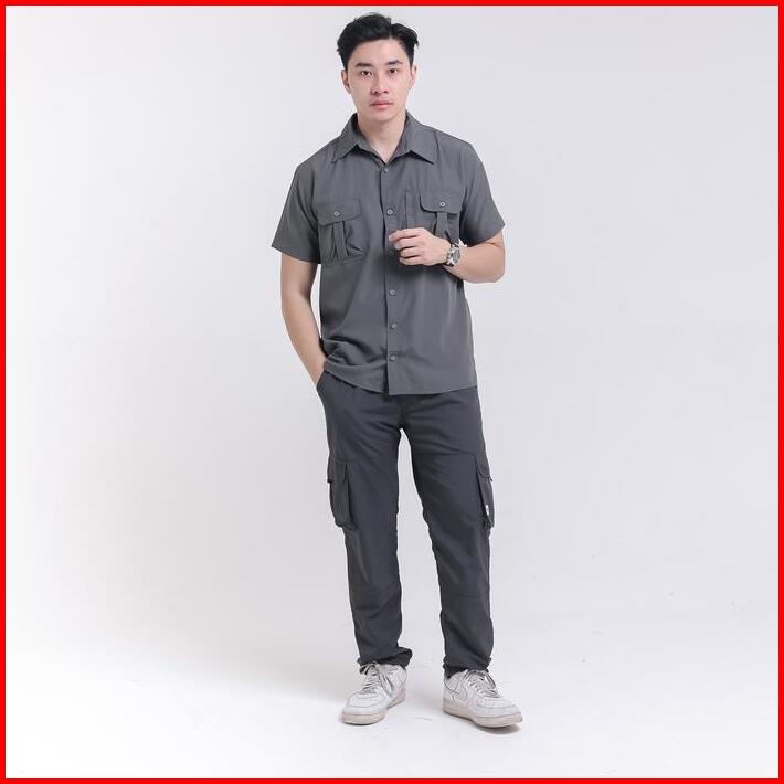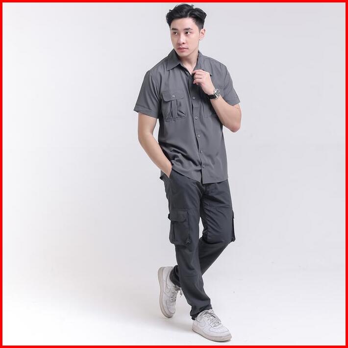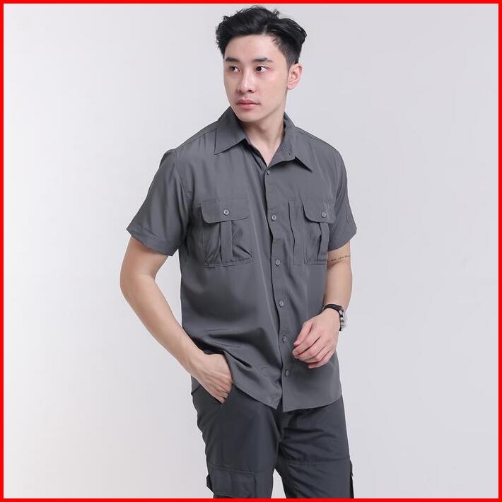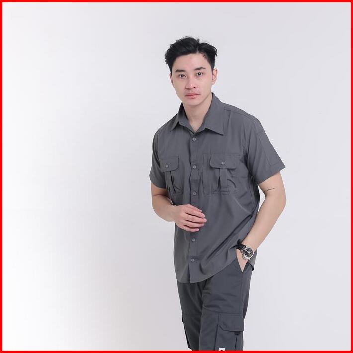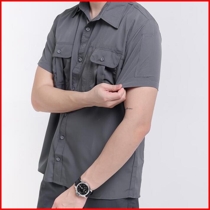 Troveast Kemeja Outdoor Nyaman Slim Work Shirt Lead Series Grey Pendek Pria