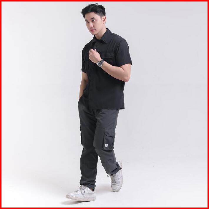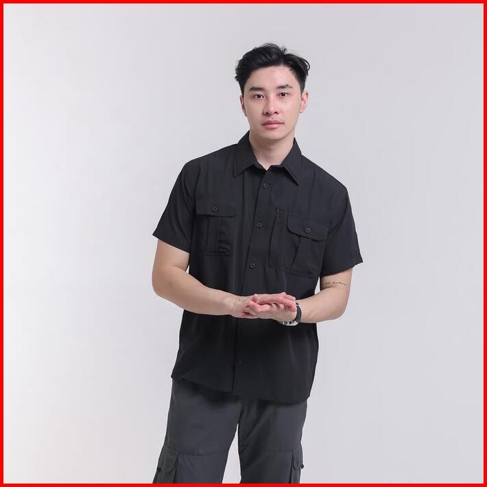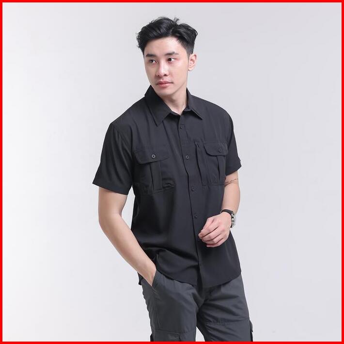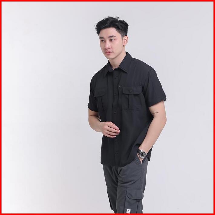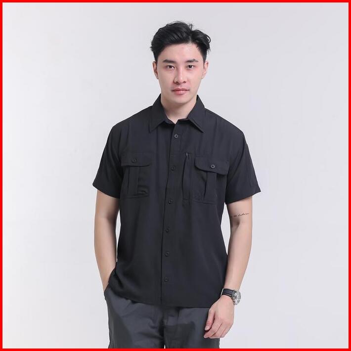 Troveast Kemeja Outdoor Nyaman Slim Work Shirt Lead Series Black Pendek Stretch