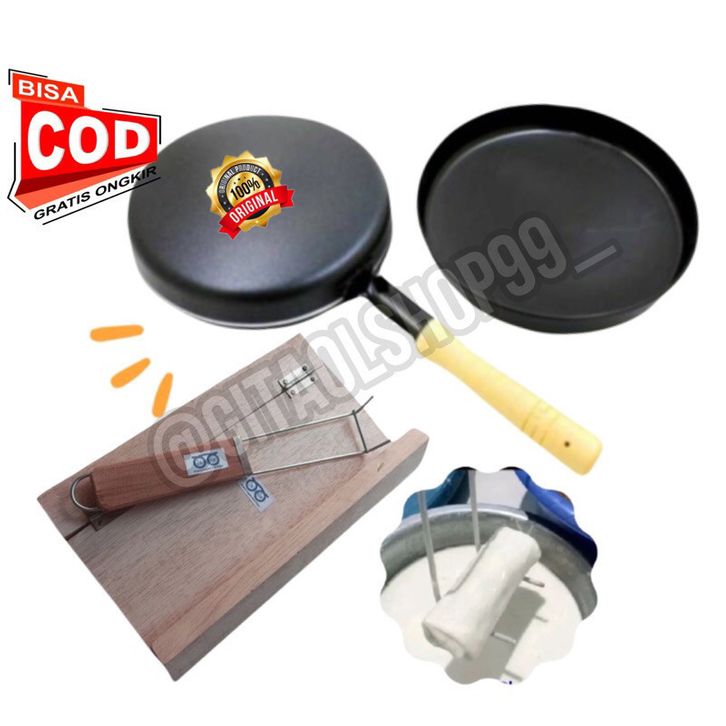 Set Teflon Crepes Anti Lengket Kulit Lumpia & Papan Risol Risoles dan Garpu Pencelup Tanpa Minyak Wajan Terbalik